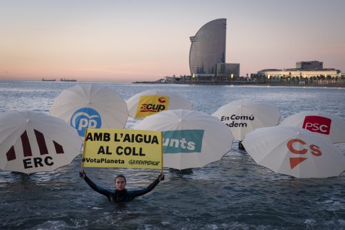 Greenpeace "inunda" la Barceloneta per demanar acció climàtica als polítics catalans