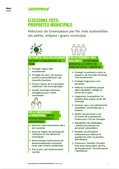 Propostes de Greenpeace en les eleccions al Parlament de Catalunya (que qualsevol partit hauria d'incloure en el seu programa electoral)