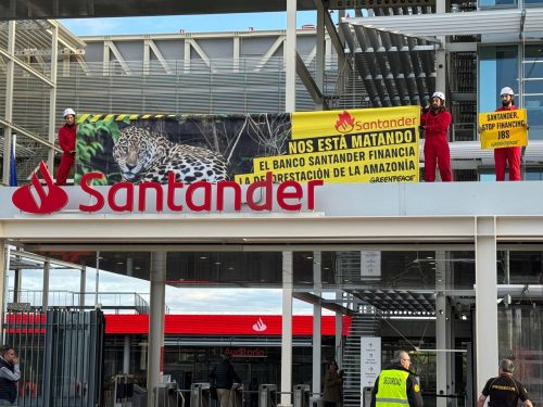 🔴ACCIÓN🔴 Denunciamos que el banco Santander mata la Amazonía