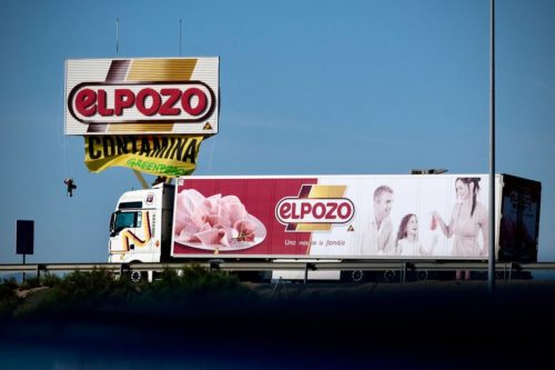 ENTRAMOS en la descomunal fábrica de 'EL POZO' y BLOQUEAMOS SU ACCESO principal para denunciar que esta industria cárnica es cruel y contaminante.