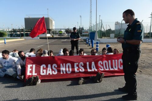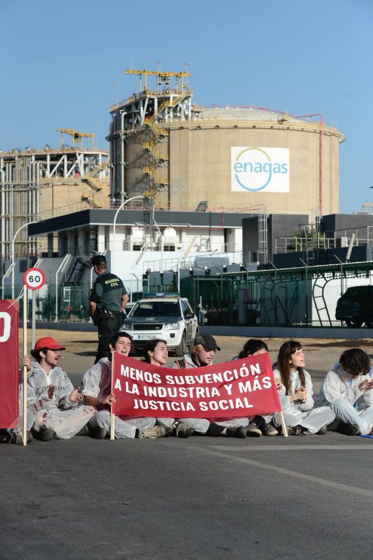 Activistas de muchas regiones diferentes de España han unido fuerzas con personas que llevan luchando décadas contra este tipo de instalaciones ubicadas en el polo químico, de refinería y de regasificadoras en Huelva, uno de los puntos negros de contaminación de Europa, el cual concentra multitud de empresas que, además de condenar el clima, destrozan el ecosistema, ya de por si frágil, con un amplio historial de vertidos tóxicos que afecta gravemente a la salud de las personas de toda la zona. Estas empresas deben responder a su responsabilidad histórica, reduciendo enormemente su demanda de gas natural, estableciendo planes de transición justa para no dejar a nadie atrás y colaborando en la desescalada de precios del gas y sus consecuencias económicas que hoy impactan a miles de familias.