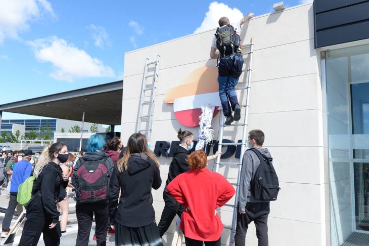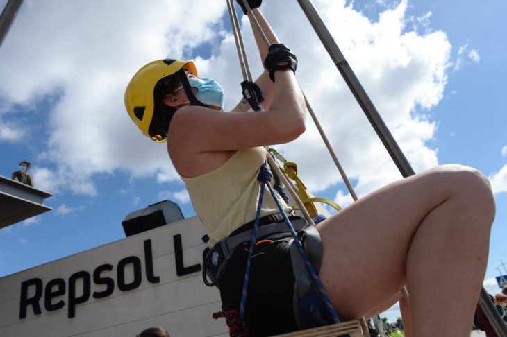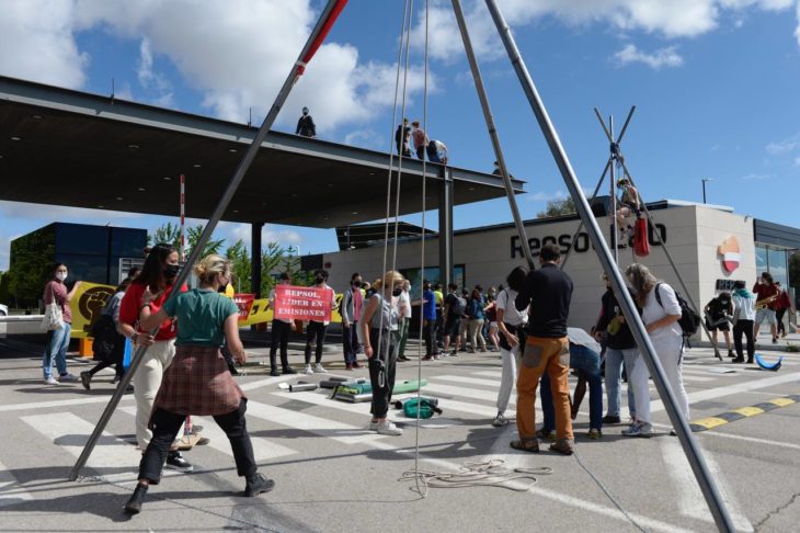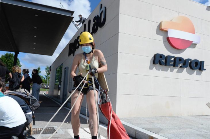 ¡Y ahí siguen las activistas colgadas y bloqueando el Lab de Repsol!