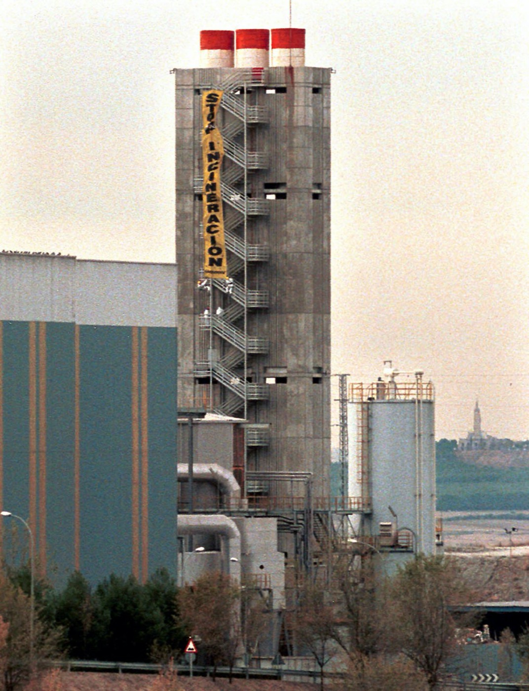 Acción de Greenpeace en 2001 contra la incineradora de Valdemingómez.