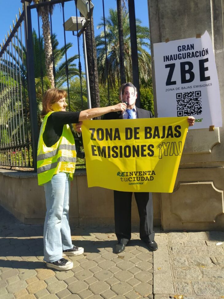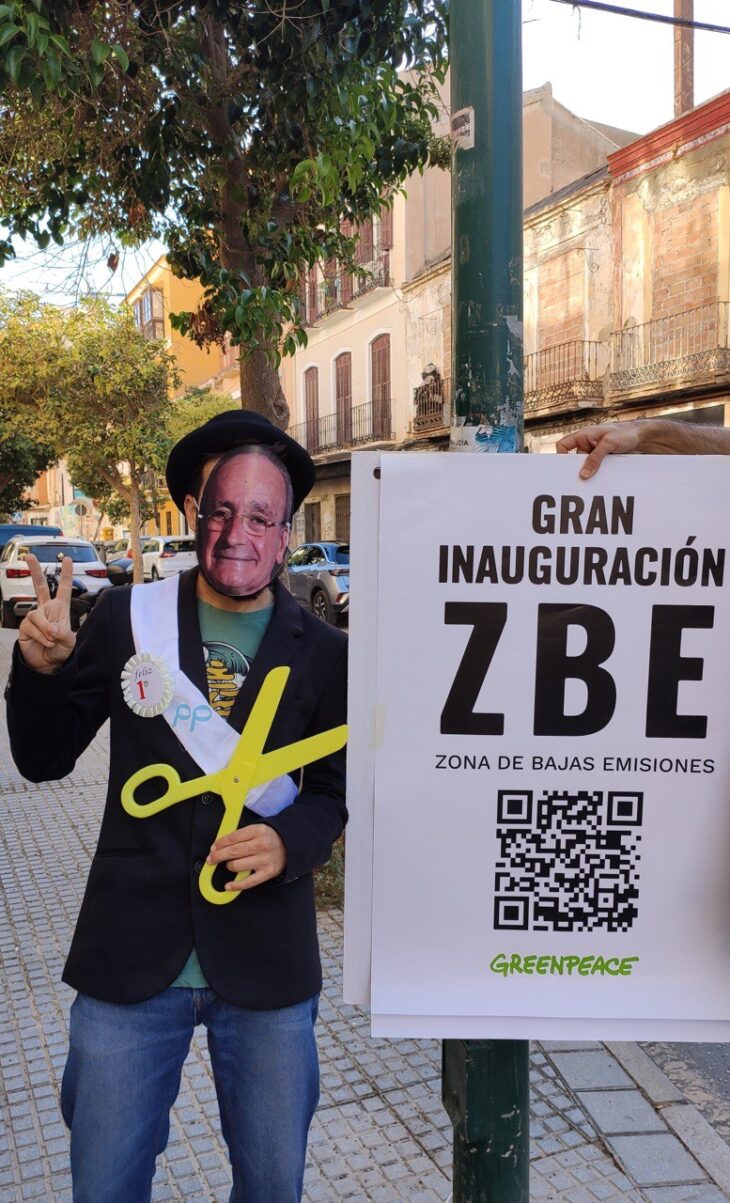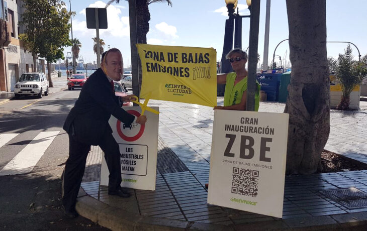 Bajo el lema “disfruta de una ciudad con menos coches”, grupos de voluntariado de Greenpeace salen en 19 ciudades para recordar a sus alcaldes y alcaldesas que aprueben nuevas Zonas de Bajas Emisiones antes del año 2023, tal y como exige la Ley de Cambio Climático.