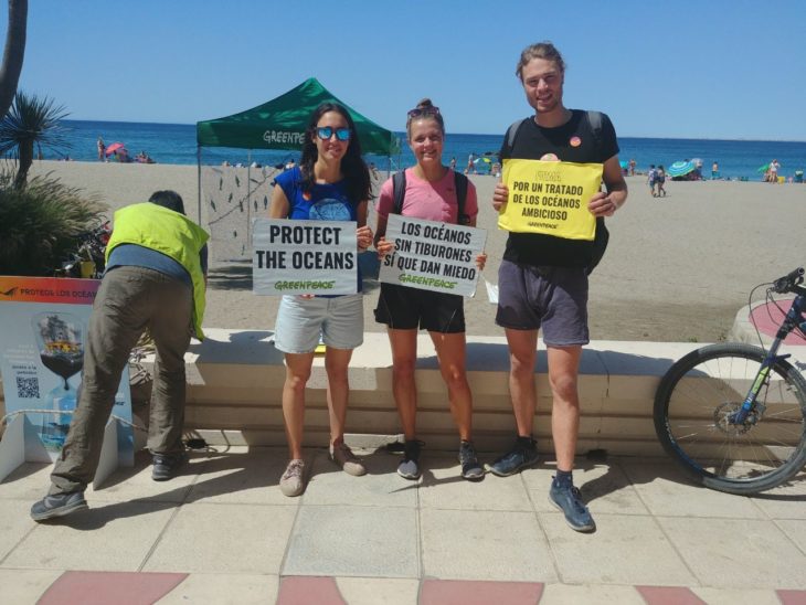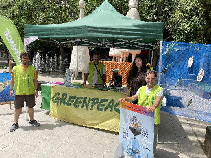 Voluntarios y voluntarias de Greenpeace nos echamos a las calles de 22 ciudades de todo el territorio para informar a la población, sumar apoyos para un Tratado Global Ambicioso y llamar la atención de los gobiernos sobre la necesidad de proteger los océanos a través de este Tratado.