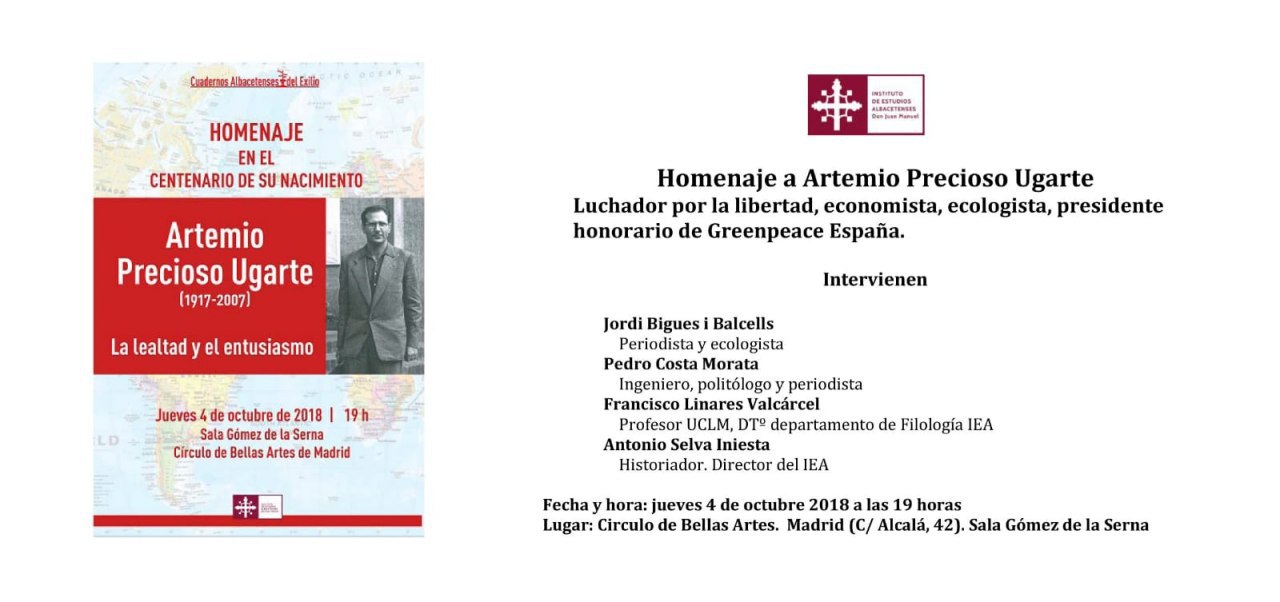 Y en este contexto de actos de reconocimiento y recuerdo, os recomiendo asistir al acto de homenaje a Artemio Precioso Ugarte que se realizará el 4 de octubre de 2018 a las 19 horas, en la Sala Gómez de la Serna del Círculo de Bellas Artes de Madrid