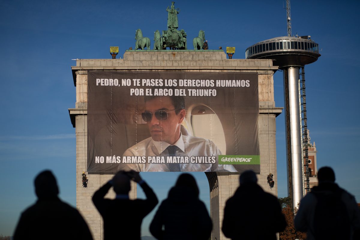 Acción de Greenpeace para pedir el fin de la exportación de armas a países que pueden utilizarlas para matar civiles. Diciembre de 2018 ©Greenpeace/Pablo Blázquez