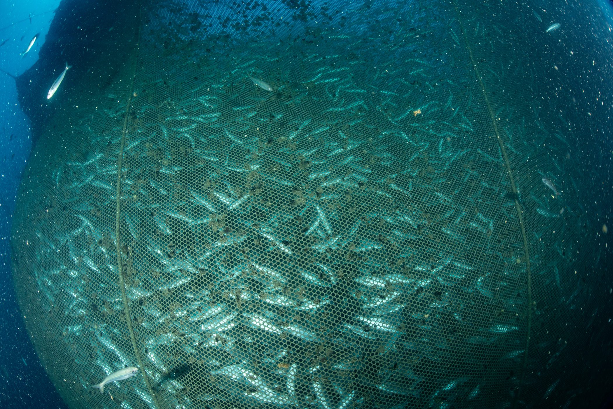 Hay miles de peces hacinados en redes intentando salir de ellas, con un elevado nivel de estrés y con poca capacidad de moverse. Pasan su vida encerrados en jaulas en mitad del mar pero, como nadie lo ve, parece que se le resta importancia.