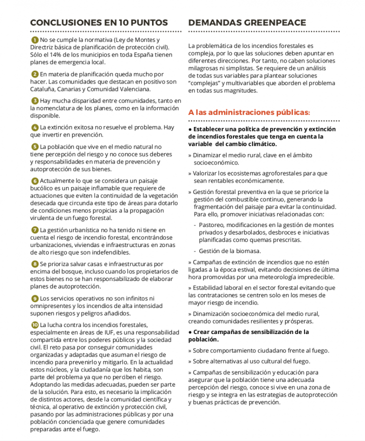 En este informe Informe Proteger el medio rural es protegernos del fuego. Hacia paisajes y población resilientes frente a la crisis climática» puedes ver las demandas.