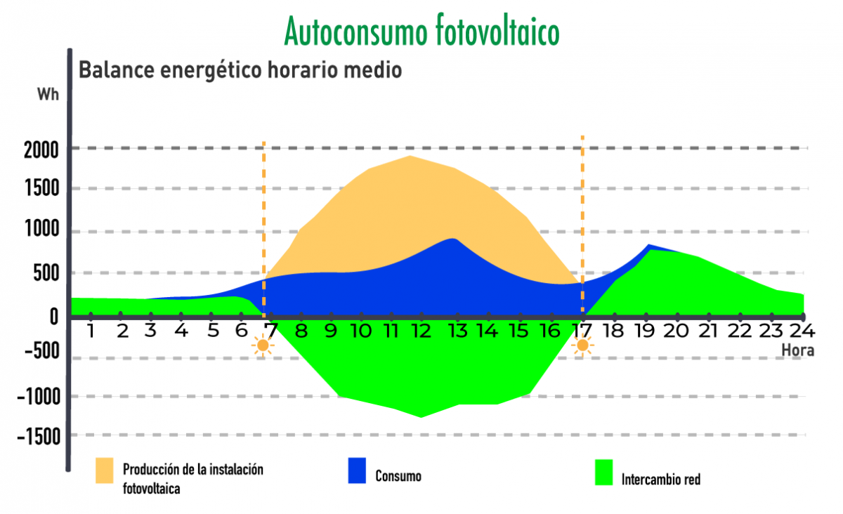 Tus placas generarán energía renovable durante el día con la que cubrirás un porcentaje de tus necesidades eléctricas, dejando de pagar por tanto a la compañía eléctrica esta electricidad que ya no necesitas.