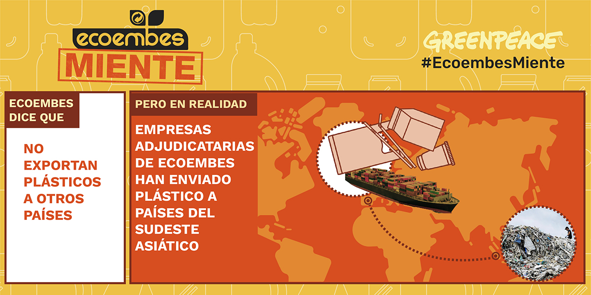 Ecoembes ha afirmado en distintas ocasiones que no exportan envases a otros países, pero lo cierto es que sus empresas adjudicatarias sí han enviado plástico a países del sudeste asiático como reflejamos en nuestro nuevo informe, Ecoembes miente.