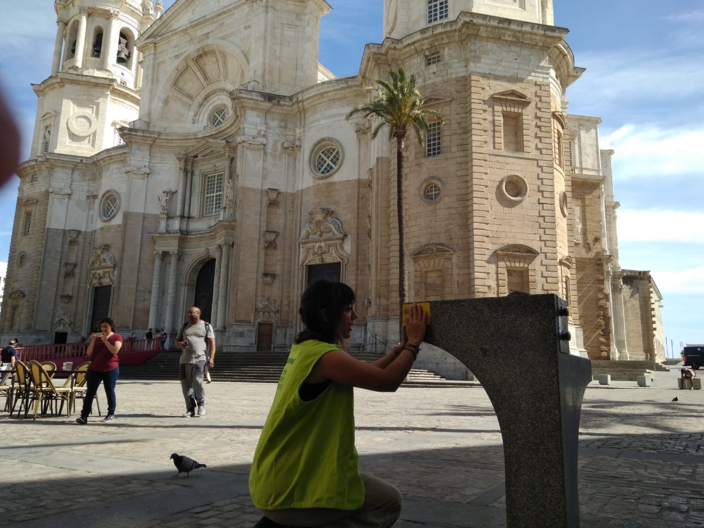 32 ciudades españolas se han llenado de mensajes contra la desinformación. Nuestros grupos de voluntariado han continuado expandiendo el mensaje que pusimos en el cubo de denuncia que colocamos, la semana pasada, en el centro de la Gran Vía madrileña.