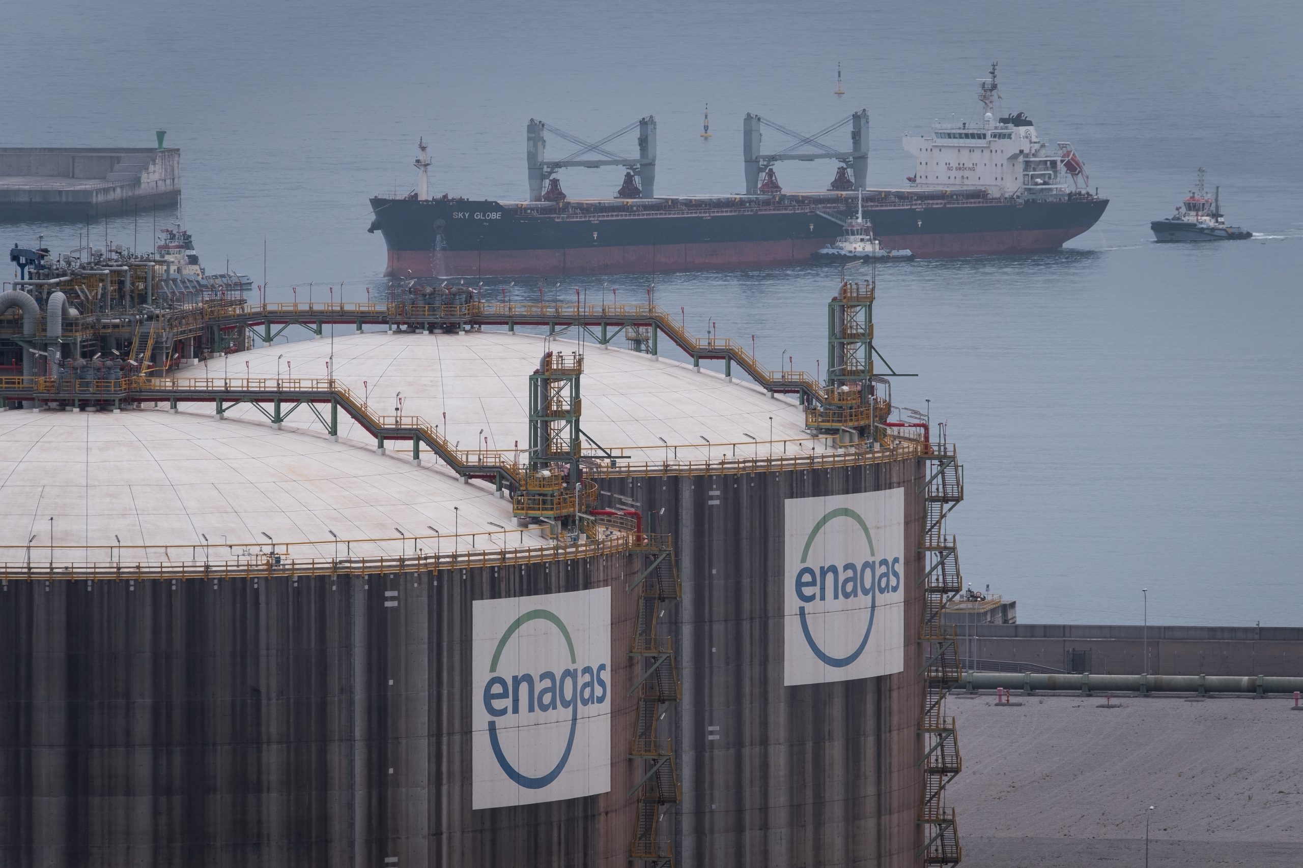 Gijón, Principado de Asturias, España. En la imagen la planta de regasificación de Enagas, en el Musel dispone de una capacidad de almacenamiento de 300.000 m3 de GNL.