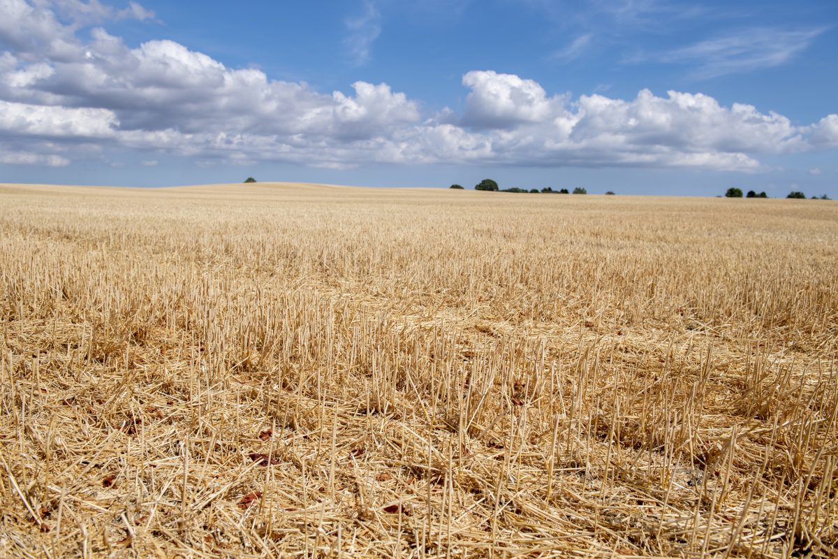 Cultivo de mazorcas de maíz afectado por la sequía en el sur de Dinamarca.