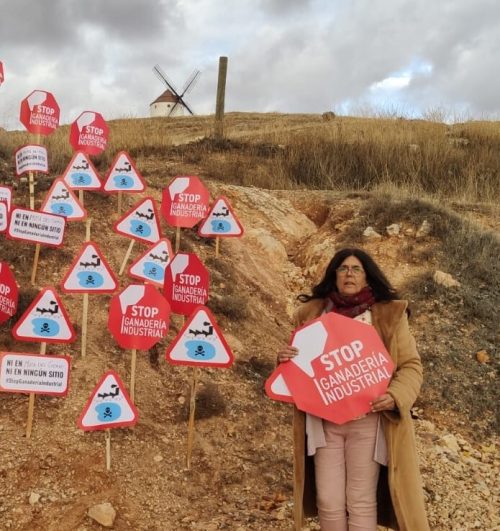 Remedios Bobillo Jimenez (Mota del Cuervo, Cuenca, Castilla la Mancha), como miembro de la plataforma vecinal Pueblo Sostenible de Mota del Cuervo y actual presidenta de la asociación Pueblos Vivos Cuenca, nos cuenta las razones que le han llevado a movilizarse: “Cuando hace 30 años veía por TV a los activistas de Greenpeace en las lanchas intentando parar los vertidos nucleares en Galicia yo tenía 24 años y supe que yo también protegería mi parte de madre tierra. Cuando en 2018 me enteré que en Mota del Cuervo (mi pueblo) querían instalar una granja industrial de cerdos de cebo, entendí que la mierda iba a llegar a mi puerta y que tenía que luchar porque no se instalase, por mucho que desde el ayuntamiento me dijeran que cumplía con la legalidad. Tras 3 años de incertidumbre, el ayuntamiento denegó la licencia, pero no he dejado de luchar. Ahora como Presidenta de Pueblos Vivos Cuenca ayudo a otros pueblos con el mismo problema.”