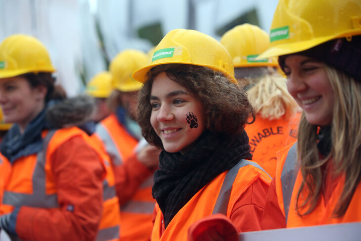 Los trabajadores renovables de Solar Century y Firefly se unen a Greenpeace y a decenas de miles de personas en la Marcha Popular por la Justicia Climática y el Empleo en Londres.