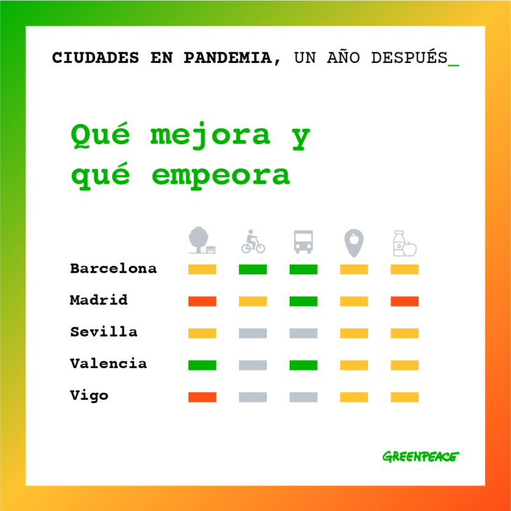 Esto hubiese sido ideal, pero no es el caso. Este año ha sido en general un año de oportunidades perdidas para poner en marcha medidas que mejorasen la movilidad y la alimentación de nuestras ciudades, para reinventarlas y hacerlas a nuestra medida. Hemos analizado las medidas de movilidad y alimentación implantadas a lo largo del pasado año durante el confinamiento y la desescalada en cinco ciudades y te contamos lo más destacado 👇