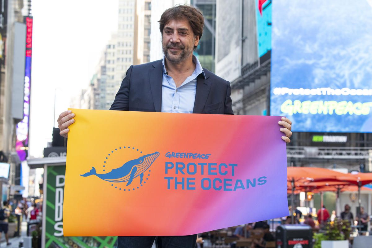 Javier Bardem durante un acto para pedir un Tratado Global de los Océanos en Nueva York. © Jason Miczek / Greenpeace