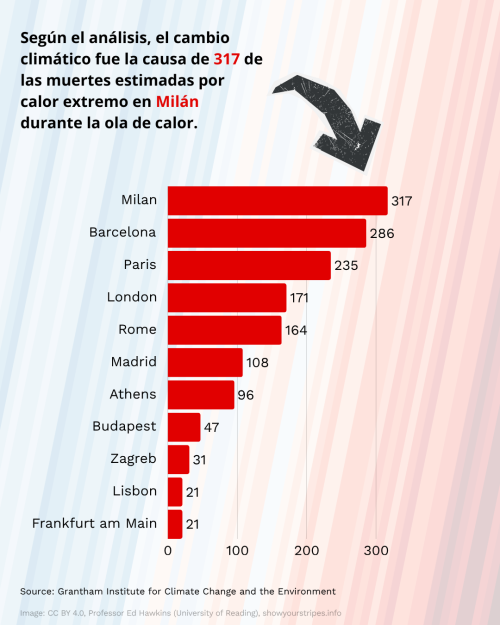 Pero no solo las olas de calor dejan víctimas mortales a su paso. DANAS como la de Valencia que mató a 288 personas y afectó directamente a más de 300.000, sequías que dejan a millones de personas sin alimento ni medios de vida, incendios como el que acaba de arrasar más de 3.000 hectáreas en Tarragona (equivalente a más de 3.000 campos de fútbol), son solo algunos ejemplos.