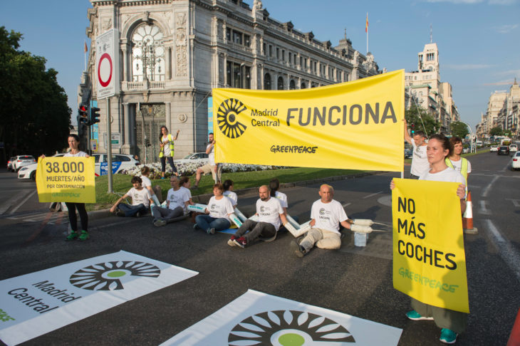 Primero lo intentaron “a las bravas”. En junio de 2019, un mes después de las elecciones, el gobierno local aprobó una moratoria de multas que en la práctica dejaba sin efecto Madrid Central. Tras una enorme manifestación, acciones en la calle y una reunión con el alcalde, cuatro días después un juzgado paralizó la moratoria de forma cautelarísima. Los tribunales acabaron dando la razón a Greenpeace y Ecologistas en Acción al declarar ilegal la moratoria del Ayuntamiento de Madrid.