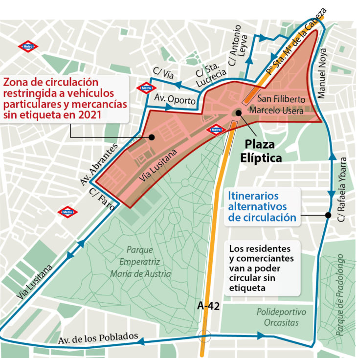No todos los cambios en la Ordenanza de Movilidad son regresivos. Medidas como la progresiva expulsión de los coches sin etiqueta adelantan la prohibición fijada para 2025. También se abre la puerta a incluir nuevas zonas de bajas emisiones en los barrios, aunque la de Plaza Elíptica parece más pensada para evitar el medidor de contaminación que hay en la plaza que para mejorar la calidad del aire en el distrito.