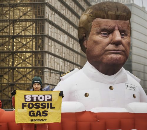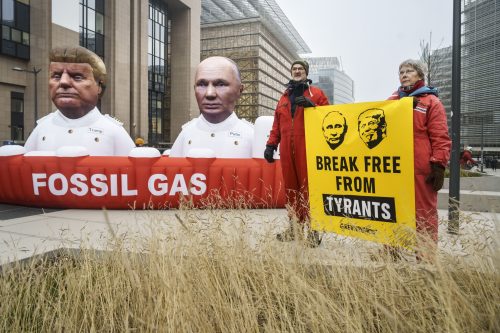Figuras hinchables de Trump y Putin contra la dependencia del gas de la UE