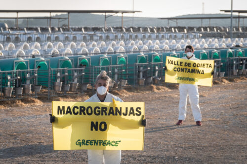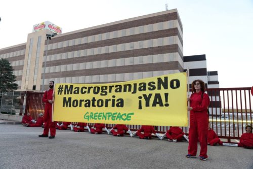 Greenpeace bloquea el acceso principal a la sede de El Pozo en Murcia para denunciar la contaminación de sus macrogranjas