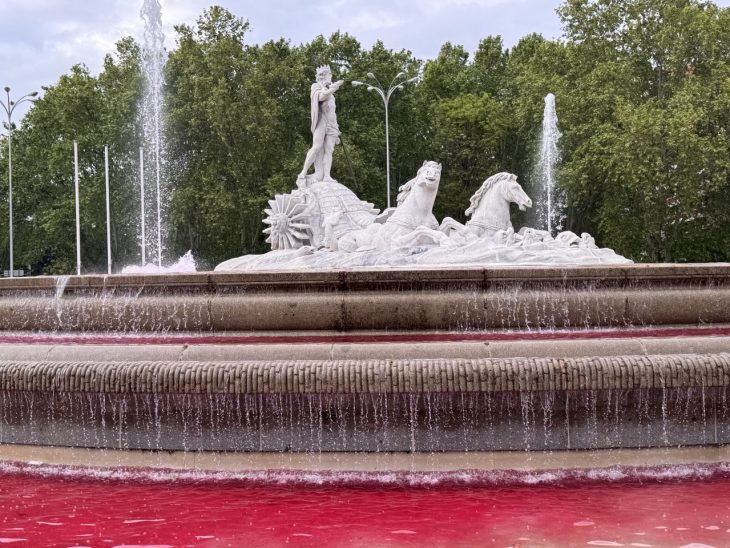 La fuente de Neptuno, teñida de rojo sangre por Gaza