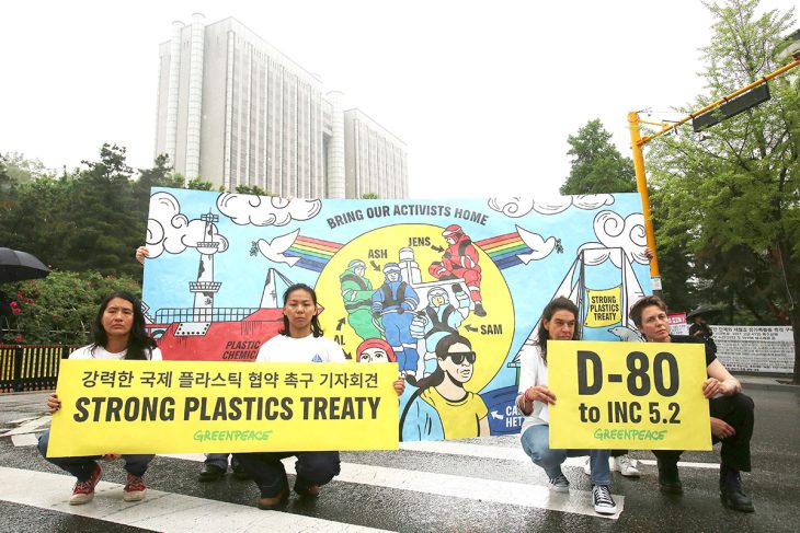 Activistas de Greenpeace retenidos en Corea: "Tomamos medidas directas para lograr un acuerdo sólido sobre los plásticos"