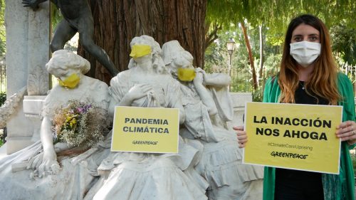 Sevilla: mascarillas en estatuas con el mensaje “pandemia climática”