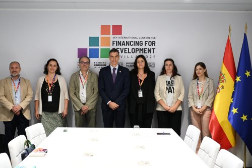 Organizaciones de la sociedad civil se han reunido hoy con Pedro Sánchez para exigir una reforma del sistema financiero global