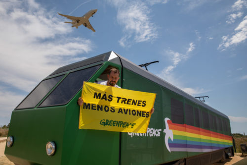 El tren de Greenpeace llega al Cultura Inquieta Urban Fest para exigir ‘Más Trenes y Menos Aviones’