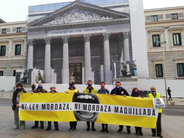 - La protesta, en la que participarán más de un centenar de activistas, tiene lugar mientras los grupos parlamentarios siguen negociando la reforma de una ley que, desde hace siete años, ha puesto en peligro el derecho a la protesta en España