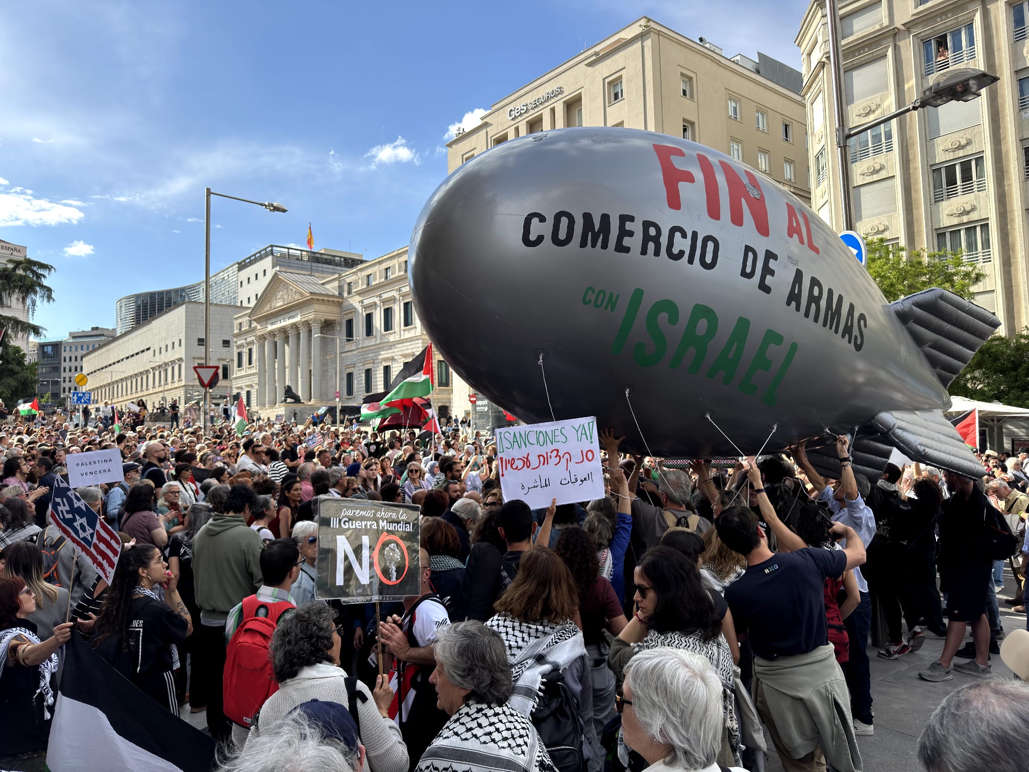El Gobierno podría decretar un embargo de armas a Israel mañana, ¿Por qué no lo hace? ¿Qué le impide hacerlo? No dejaremos de movilizarnos hasta conseguir que se acaben las importaciones, exportaciones, los tránsitos y el resto de formas de cooperación militar con Israel.
