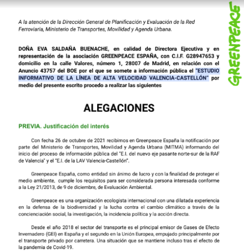 12-01-2022 Alegaciones al «Estudio Informativo de la línea de alta velocidad Valencia-Castellón»” Descargar