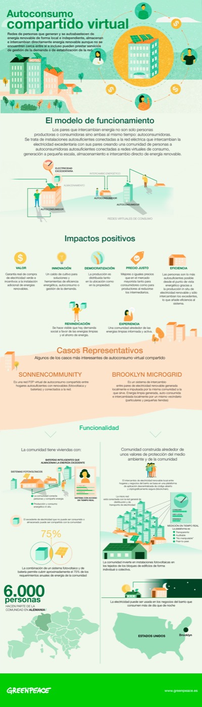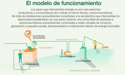 Redes de personas que generan y se autoabastecen de energía renovable de forma local e independiente, almacenan e intercambian directamente energía renovable aunque no se encuentren cerca entre sí e incluso pueden prestar servicios de gestión de la demanda o de estabilización de la red.
