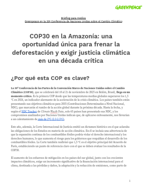 05-11-2025 Briefing para medios – COP30 en la Amazonía: una oportunidad única para frenar la deforestación y exigir justicia climática en una década crítica Descargar