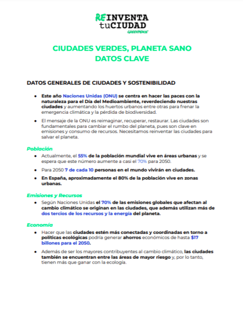 Ciudades verdes, planeta sano. Datos clave