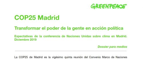 Dossier para medios. COP25 Madrid