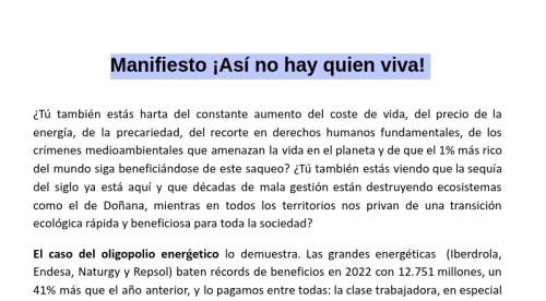 Manifiesto ¡Así no hay quien viva!